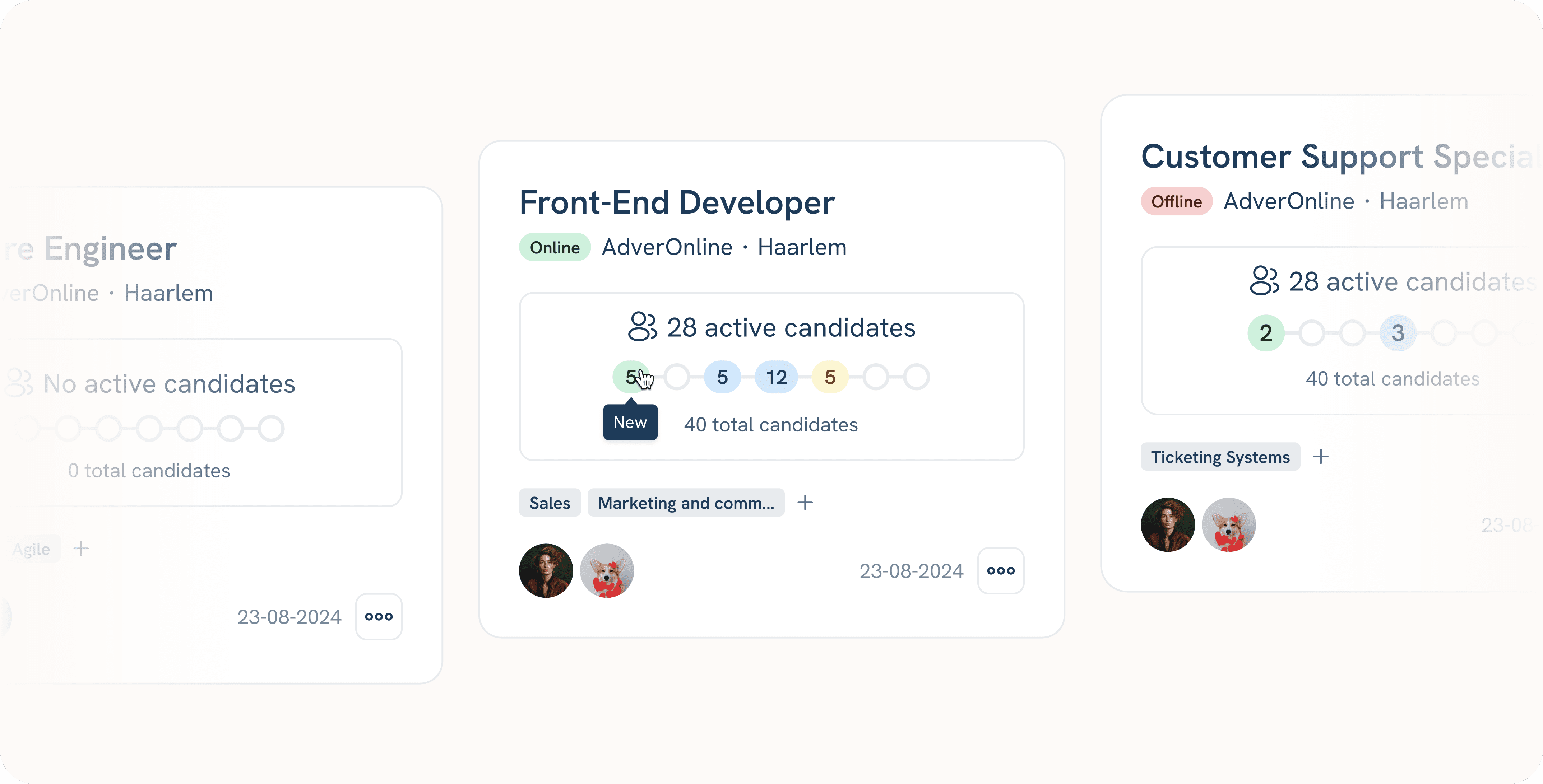 Our work prioritized key sections of the application, including the navigation structure, Candidates overview and detail pages, Vacancies overview and detail pages, and the Dashboard. Each section was meticulously redesigned to streamline workflows, reduce user confusion, and deliver a visually appealing interface.